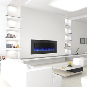 The powerful, thermostatic, fan-forced heater vents from the top, center of the unit, dispersing the heat evenly throughout your room. Creating 5,000 BTUs of comforting supplemental heat, the unit will help keep you warm during the colder days of the year, while saving you money. The Napoleon Allure is a highly effective and efficient heating solution and allows you to apply the notion of zone heating - only heat the rooms you are in while keeping your main household thermostat lower. The heat and flame functionality are independent from one another, allowing you to enjoy the unit year-round and not just when additional warmth is necessary. Touch sensitive manual controls are located on the front of the unit, while a convenient remote control is also included giving you the ability to manipulate the full functionality of the unit from virtually anywhere in your room. Great for bedrooms, sitting rooms, family rooms and media rooms, the Napoleon 50-Inch Allure Wall Mount Electric Fireplace is the perfect addition to your home.